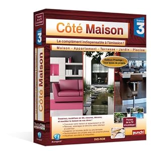 Passez de la télévision à la pratique et réalisez votre habitation en 3D dans les moindres détails. Maisons de designers, conceptions d'architectes, réhabilitations ou décorations d'intérieur, les projets des plus simples aux plus sophistiqués sont permis avec cette édition Prestige d'Architecte 3D - Côté Maison! - Atelier de création d'objets 3D - Conseils écologiques pour économiser de l'énergie et de l'argent - Créez votre maison en 3D de la cave au grenier - Aménagez et visitez votre maison de pièce en pièce - Générez les plans pour réaliser une maquette papier en 3D - Créez le jardin de vos rêves avec piscine, terrasse... Concevez... - Conception et modèles de maison - Bibliothèque d'objets - Création des fondations - Plans techniques (électricité, plomberie, chauffage et climatisation) - Editeur de toits - Estimateur de coûts - Conception du jardin - Editeur de piscines ... avec des outils sophistiqués... - Editeur topographique - Editeur de charpentes - Éditeur de mobilier 3D - Atelier de création d'objets 3D - Editeur PhotoView™ 3D (importation de photos) - Importation de fichiers 3DS - Assistant de création de pièces - Assistant toitures, cheminées et placards - Assistant terrasses et habillages - Personnalisation de matériaux - Création d'une maquette de votre projet ...et visualiser le ré